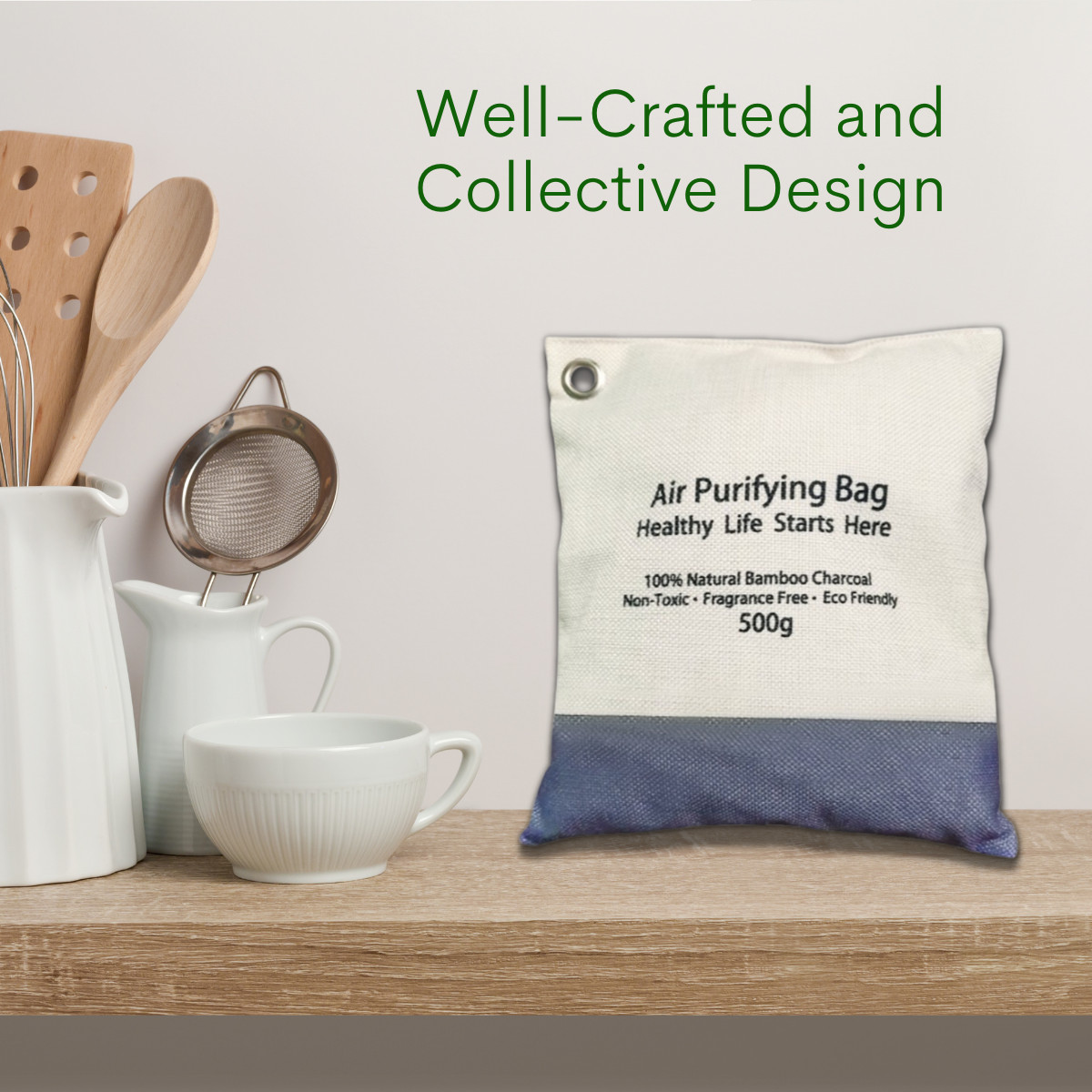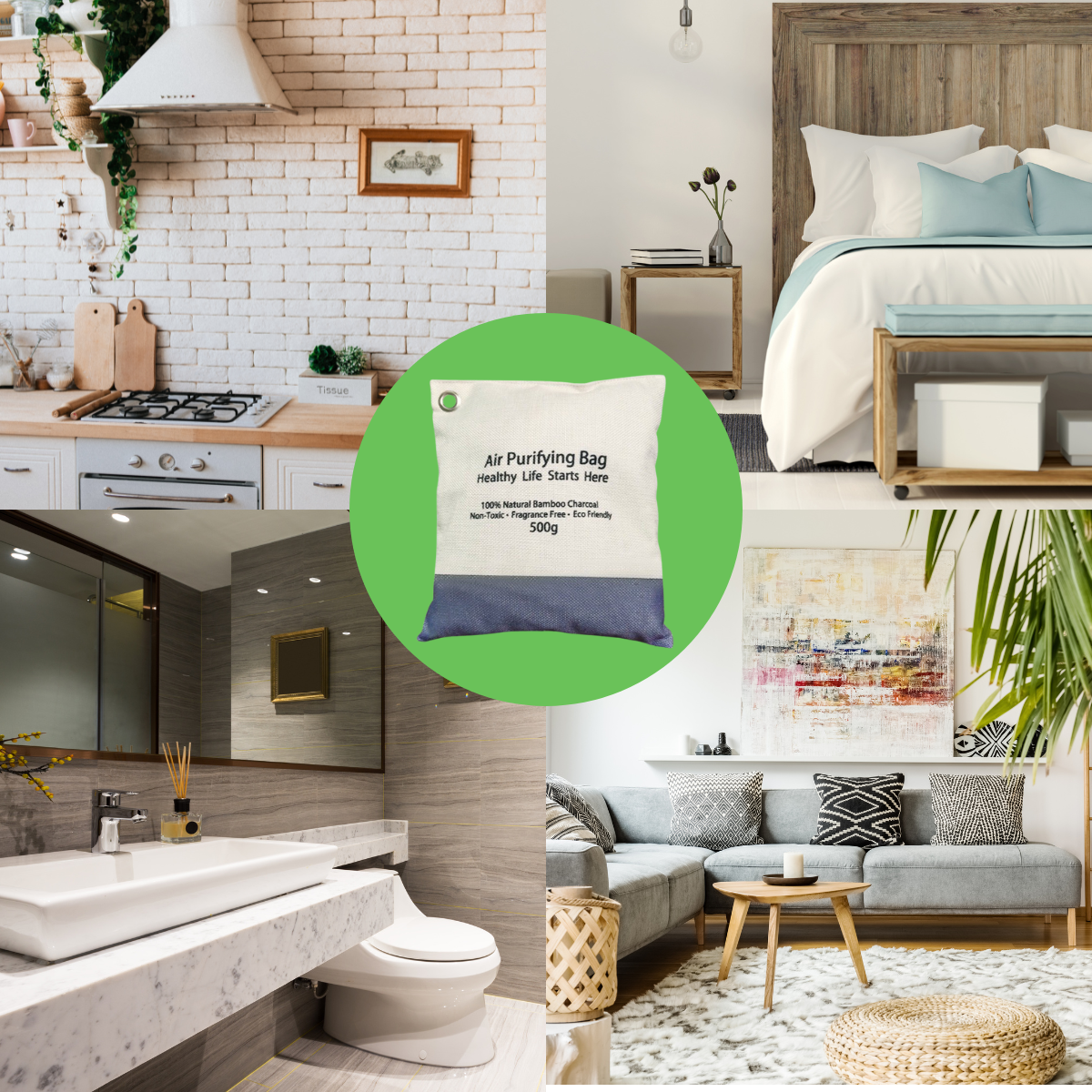 Compared to regular charcoal, bamboo charcoal has ten times more surface area and is four times stronger in its absorption rate. The porous structure of bamboo charcoal provides countless tiny holes that effectively absorb odors, moisture, and polluted air particles such as formaldehyde, ammonia, and benzene.