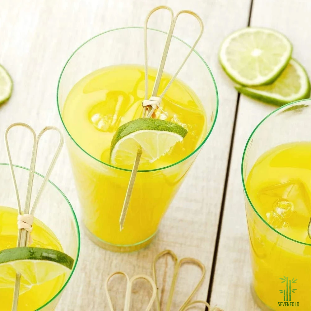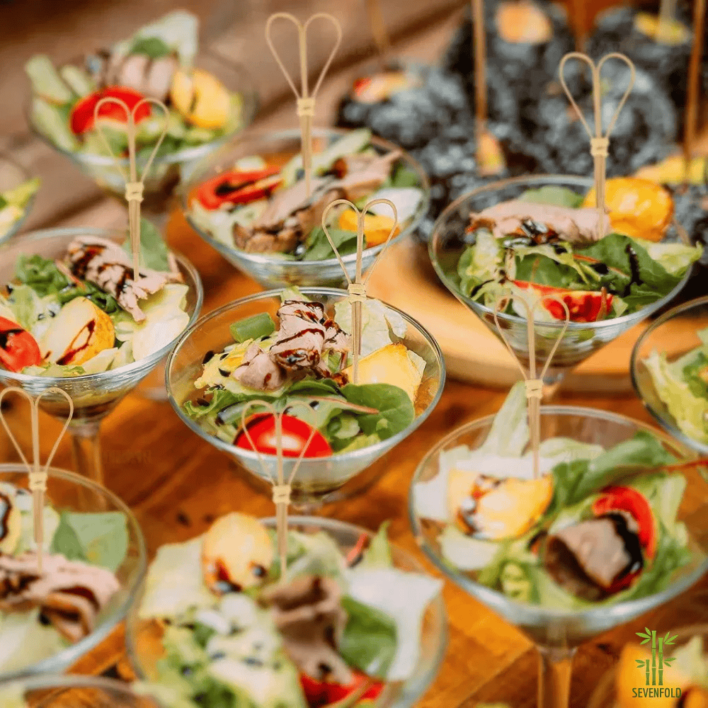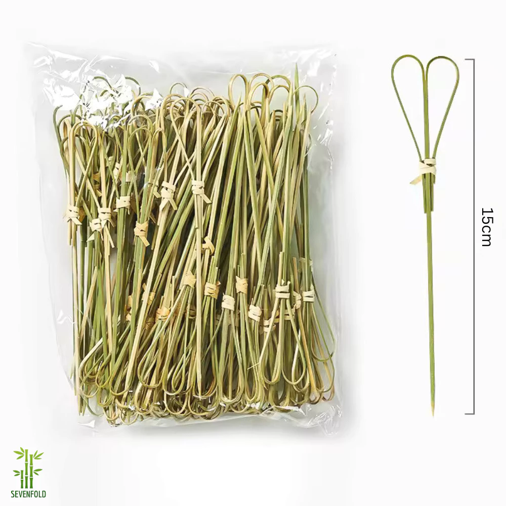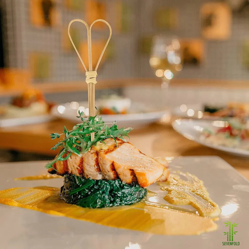 [SEVENFOLD] 100pcs Bamboo Skewers, Decorative, Heart Shape, Scissors Design, Cocktail, Appetizer – 15 CM