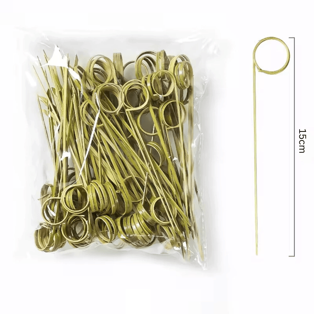 LOOPED RING BAMBOO SKEWERS FANCY STICKS COCKTAIL PICKS PARTY BAR APPETIZER